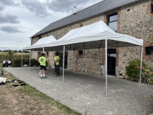 - 3 pagodes 5m par 5m (dont 1 avec bâches transparentes) : 180€/pagode